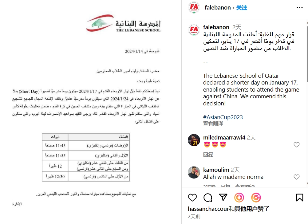 提前放学!为看国足vs黎巴嫩,卡塔尔一黎巴嫩学校宣布提前放学