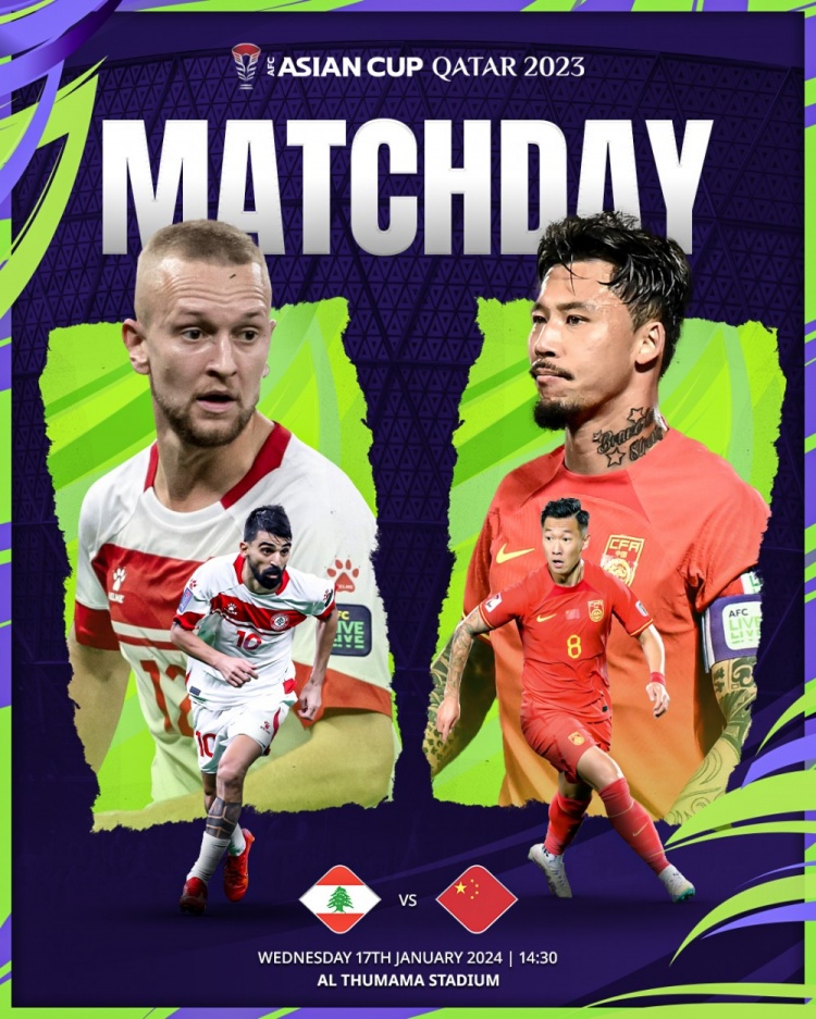 亚洲杯官方发布中国vs黎巴嫩赛前海报:徐新、张琳芃出镜