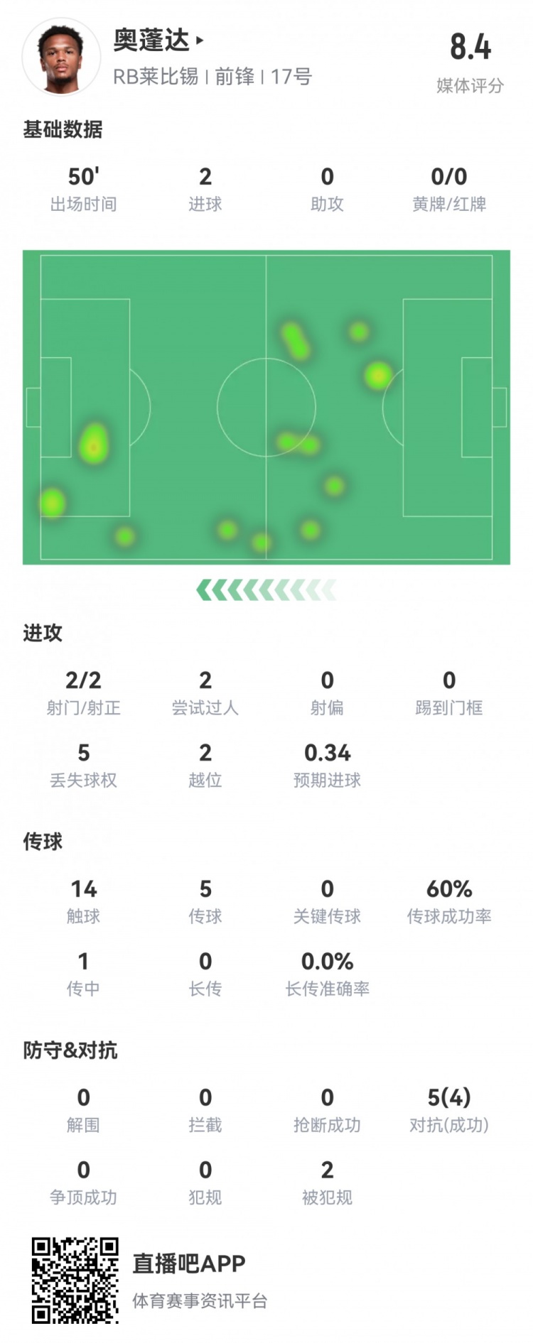 豪门新猎物!23岁奥蓬达半场数据:两次单刀破曼城,获评8.4分