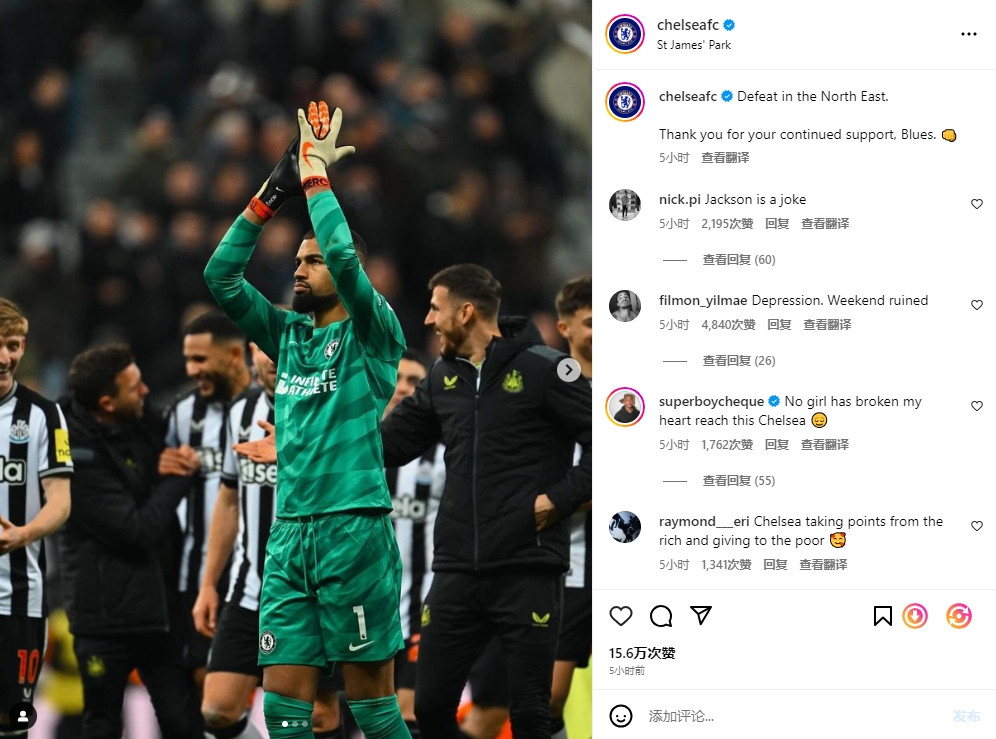 14惨败!切尔西社媒被冲:和打曼城时是一支队劫富济贫