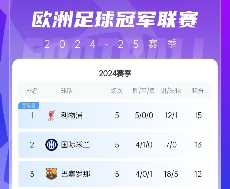 欧冠前3的实力第1五战全胜,第2一球未失,第3轰18球火力全开