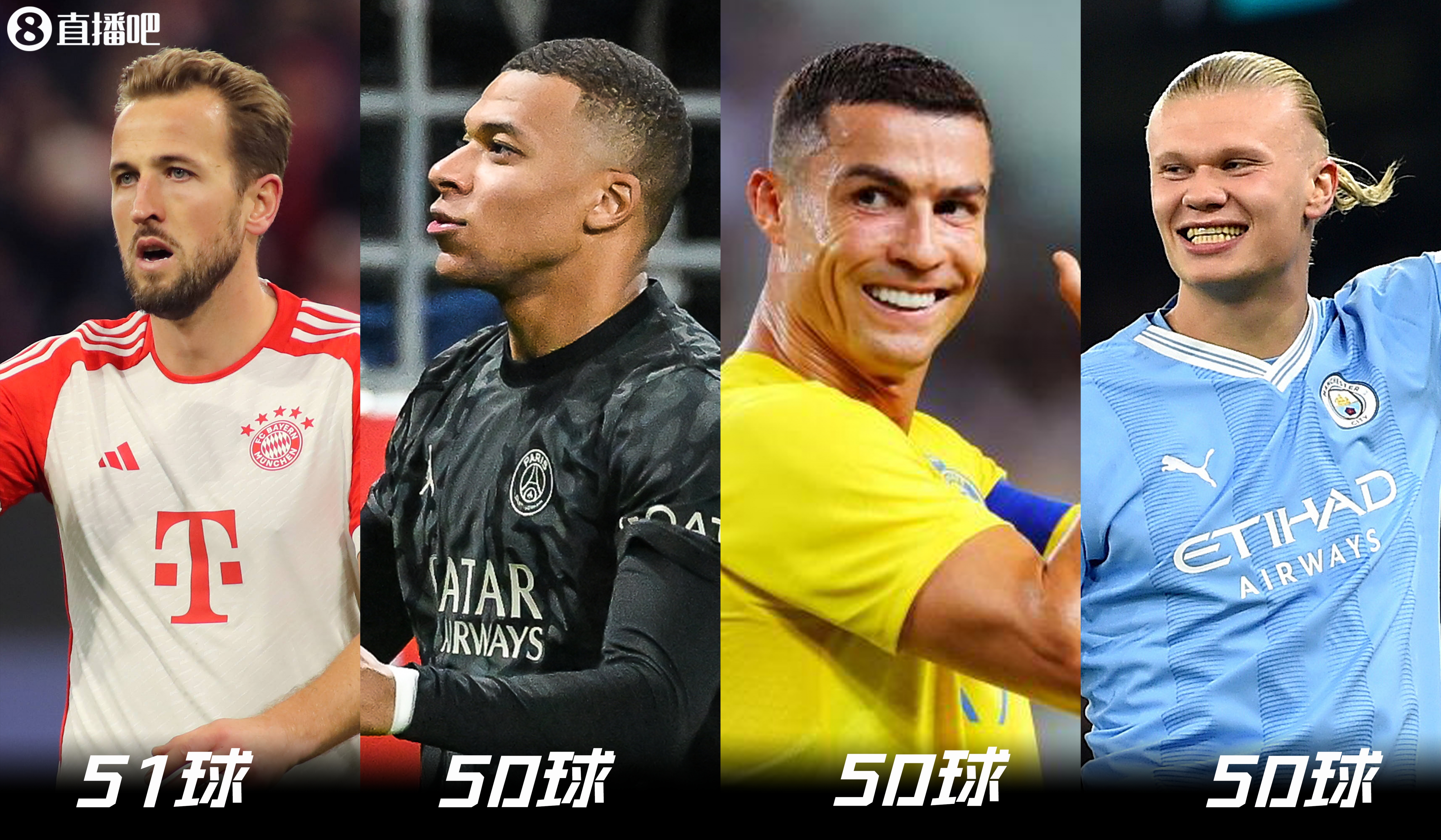 你看好谁凯恩51球,姆巴佩C罗哈兰德50球紧随其后