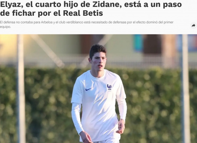西媒:齐达内四儿子埃利亚斯很有可能加盟贝蒂斯,身高到195cm