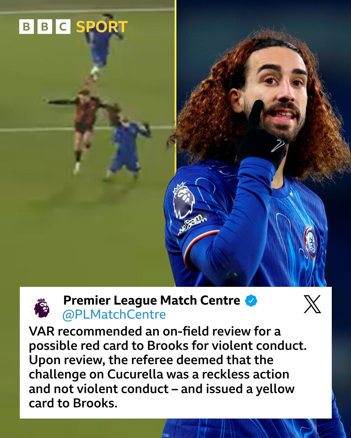 本赛季首次主裁回看布鲁克斯拉库库头发补黄,不采纳VAR给红