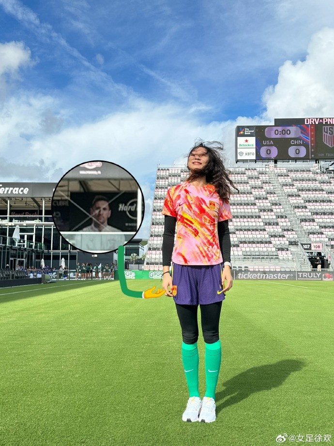 女足国门徐欢晒照:踩过梅西的足迹一定要变得更勇敢!