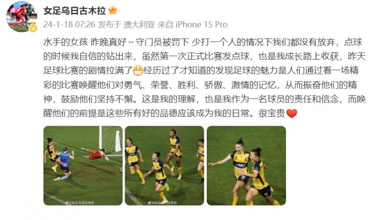 第99分钟绝杀!乌日古木拉发文:首次罚点球,是我成长路上收获