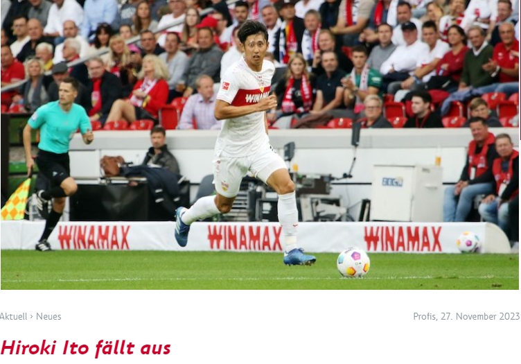 斯图加特宣布伊藤洋辉因肌肉伤势,冬歇期前不会为球队出战