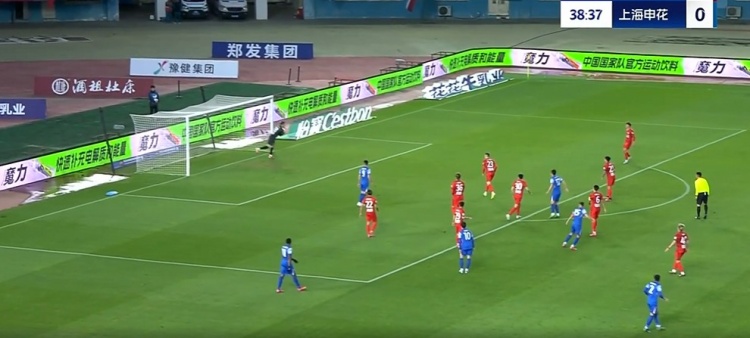 第39分钟,申花前场连续的进攻,吴曦左侧肋部的凌空抽射被门将抱住↓