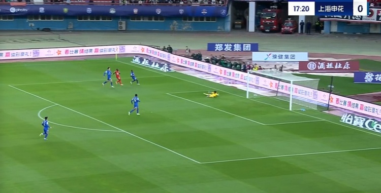 第18分钟,河南队左路反击机会,阿奇姆彭加速突破小角度打门被门将化解↓